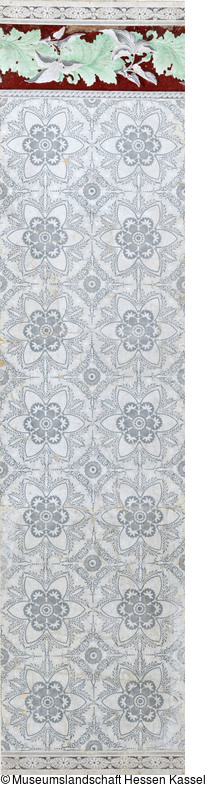 Rapporttapete mit oberer und unterer (vermutlich französischer) Bordüre