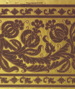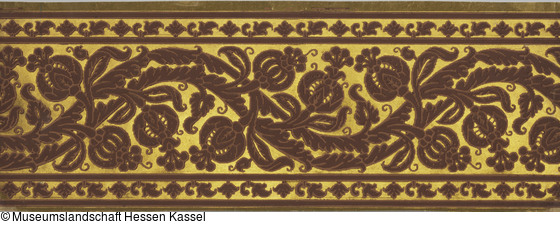 Bezeichnung: Papierbordüre mit Imitation eines Reliefsamtes auf goldenem Grund