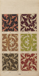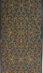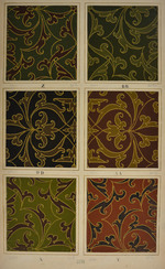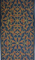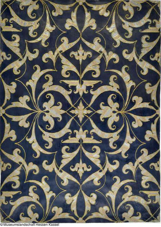 Papiertapete mit Imitation einer Applikationsstickerei mit Goldfäden in Anlegetechnik