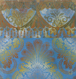 Teilstück mit Bordüre oben 131,1 x 49,4 cm (Blattmaß) Teilstück mit Bordüre unten 95,7 x 49,4 cm (Blattmaß) Teilstücke nach Rapport zusammengesetzt 202 x 49,4 cm (Blattmaß) Teilstück mit Bodüren (alt) 131 x 49 cm (Blattmaß) Teilstück ohne Bordüren (alt) 91 x 49 cm (Blattmaß)