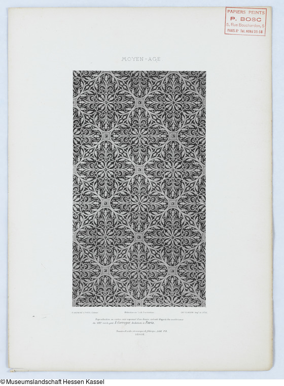 Stempel: PAPIERS PEINTS / P. BOSC / 5. Rue Bouchardon, 5 / PARIS-Xe Tél. NORd 35-58;