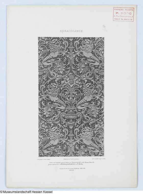 Stempel: PAPIERS PEINTS / P. BOSC / 5. Rue Bouchardon, 5 / PARIS-Xe Tél. NORd 35-58;