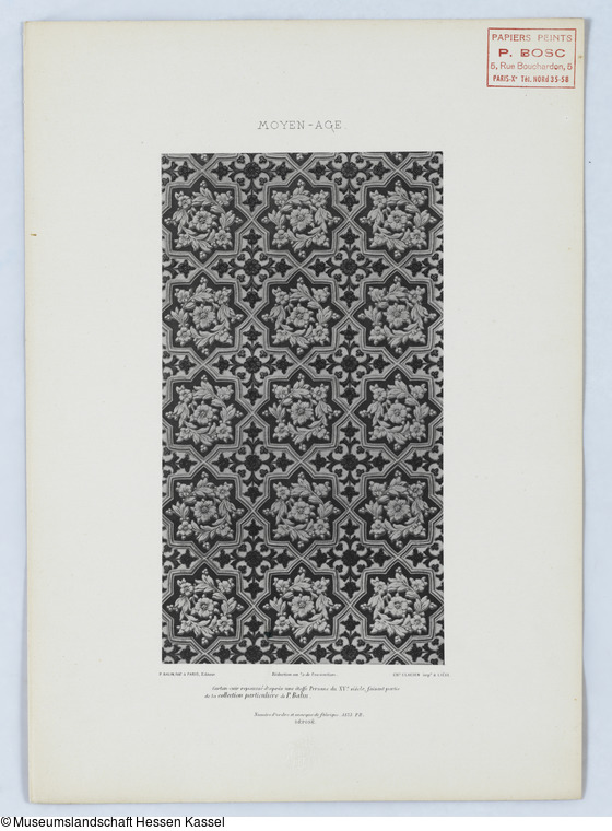 Stempel: PAPIERS PEINTS / P. BOSC / 5. Rue Bouchardon, 5 / PARIS-Xe Tél. NORd 35-58;
