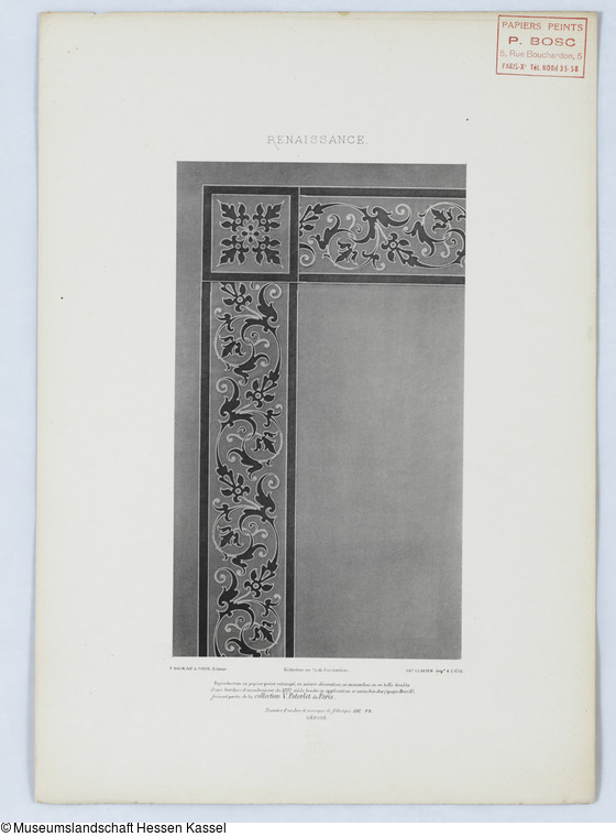 Stempel: PAPIERS PEINTS / P. BOSC / 5. Rue Bouchardon, 5 / PARIS-Xe Tél. NORd 35-58;