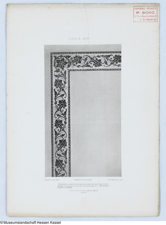 Stempel: PAPIERS PEINTS / P. BOSC / 5. Rue Bouchardon, 5 / PARIS-Xe Tél. NORd 35-58;