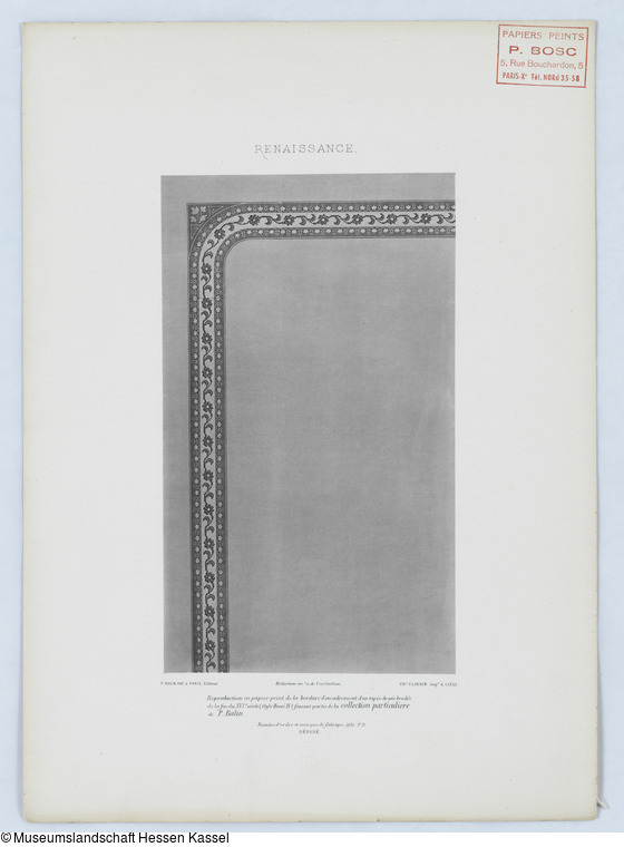 Beschriftungen: Stempel: PAPIERS PEINTS / P. BOSC / 5. Rue Bouchardon, 5 / PARIS-Xe Tél. NORd 35-58;