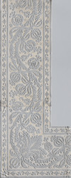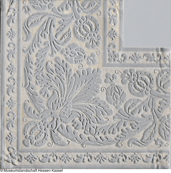 Bezeichnung: Eckstück einer Bordüre mit Imitation eines Reliefsamtes mit goldenen Laméfäden